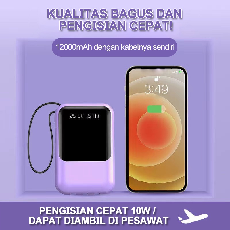 POWER BANK MINI 12000MAH SUPER LIGHTWEIGHT PALM SIZE POWERBANK WITH LED DISPLAY