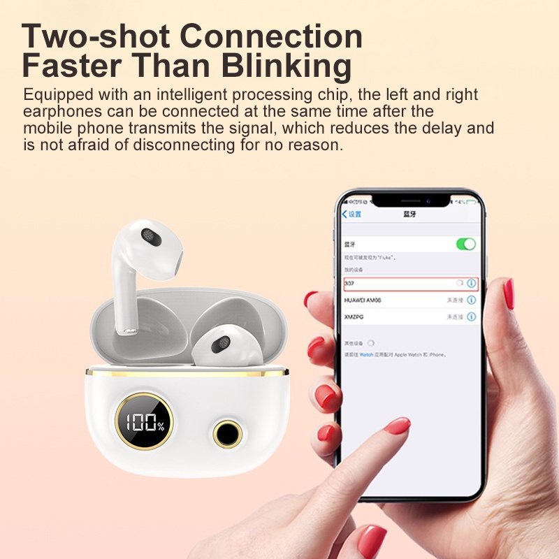 EARPHONE BLUETOOTH WIRELESS , IPX5 TWS HI-FI STEREO EARBUDS, WITH CHARGING CASE BLUETOOTH EARPHONE