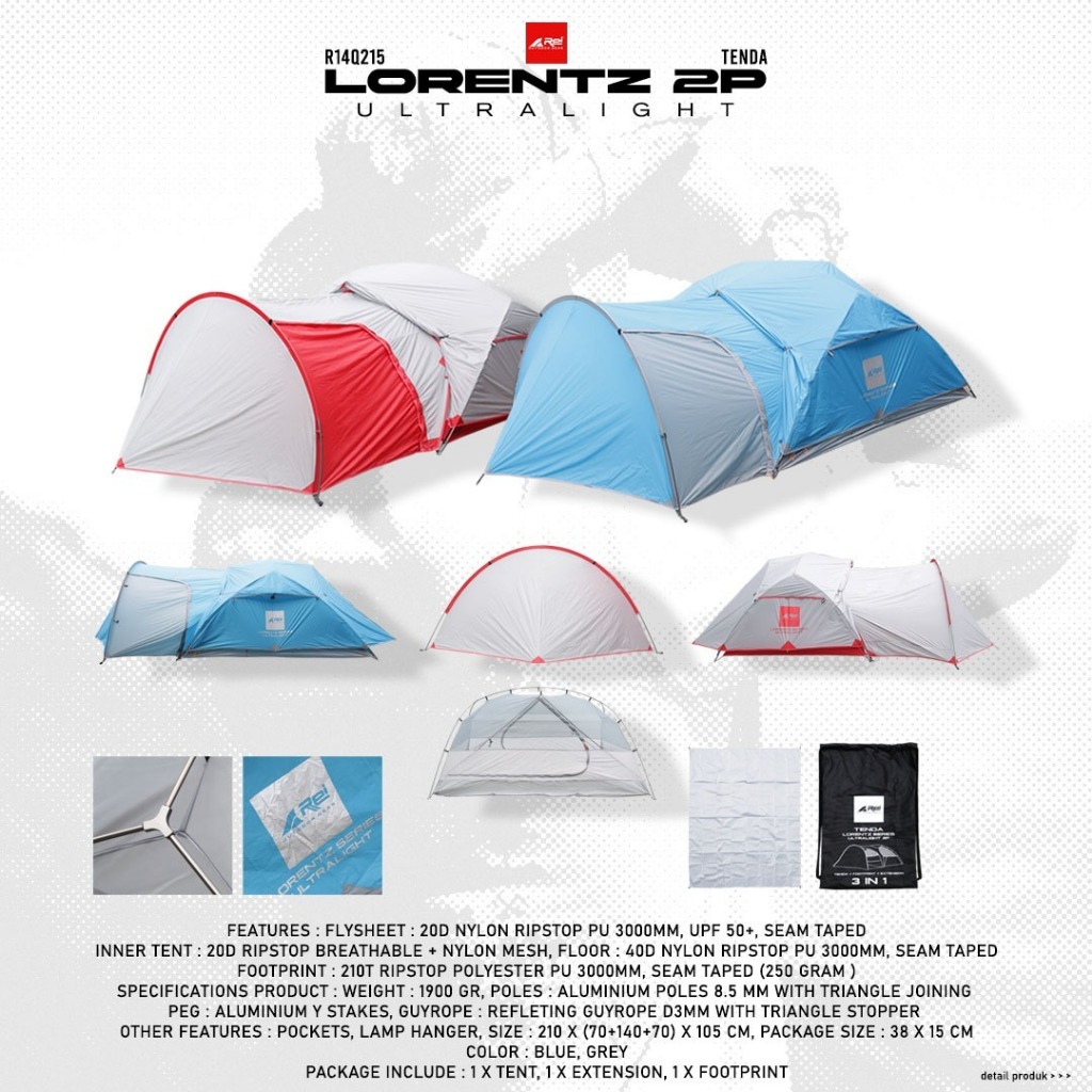 TENDA CAMPING ULTRALIGHT LORENTZ KAPASITAS 2 ORANG 03 IN 01 AREI OUTDOORGEAR