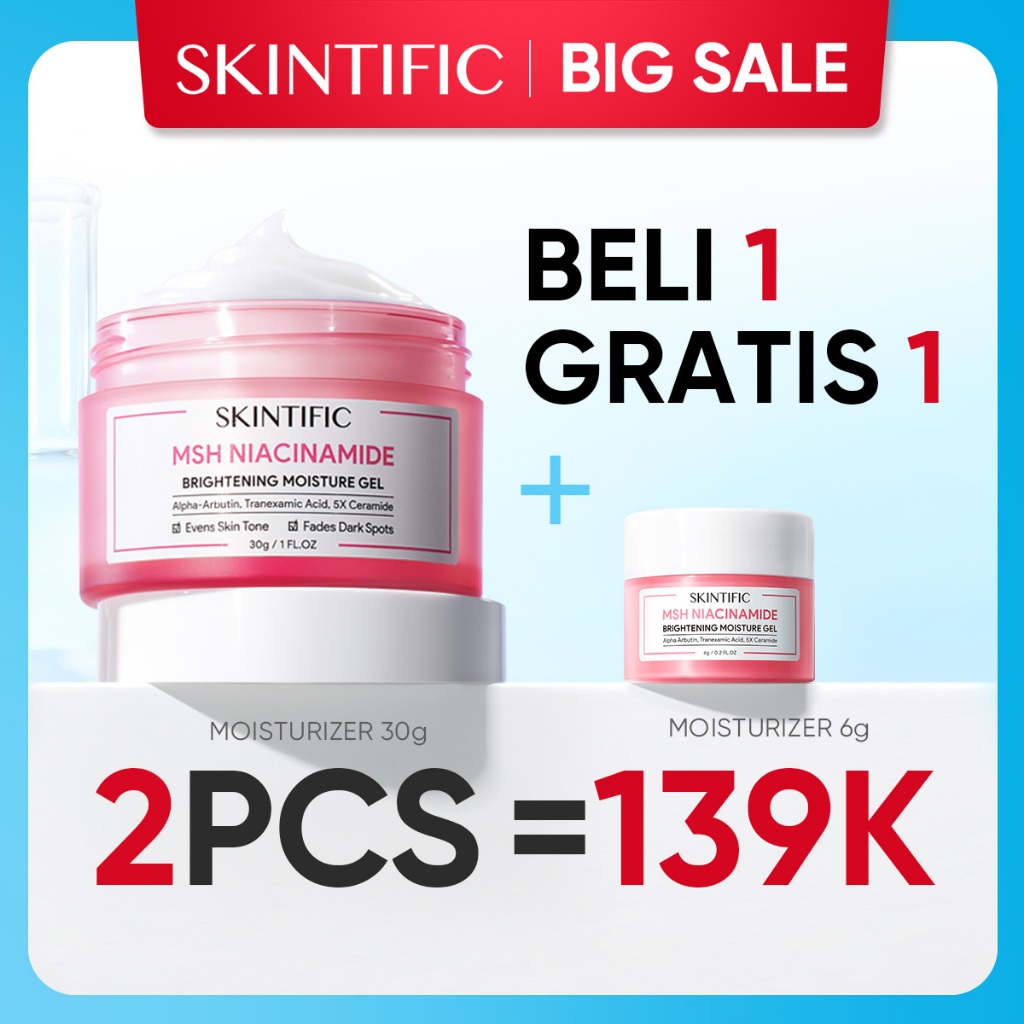 SKINTIFIC MSH NIACINAMIDE BRIGHTENING MOISTURIZER GLOWING MOISTURE GEL 30G ALPHA ARBUTIN CREAM PEMUTIH WAJAH