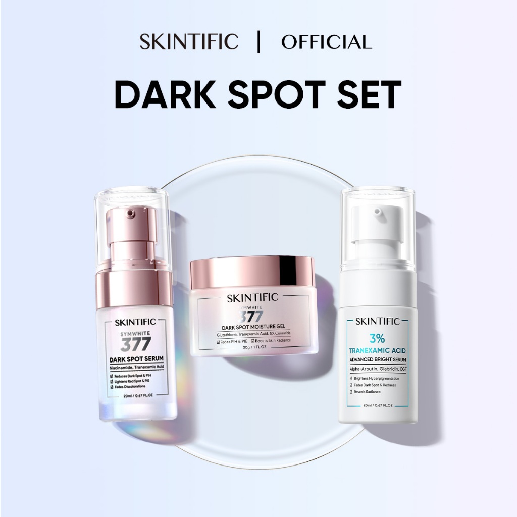 SKINTIFIC ANTI DARK SPOT PAKET SKINCARE 3PCS SYMWHITE 377 SERUM + TRANEXAMIC ACID SERUM + SYMWHITE377 MOISTURIZER GEL