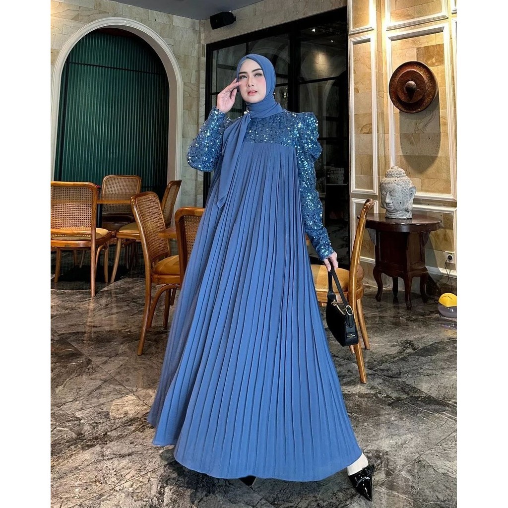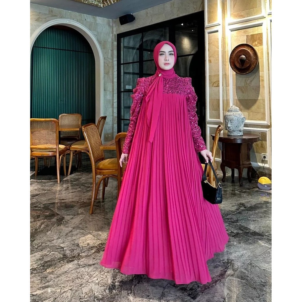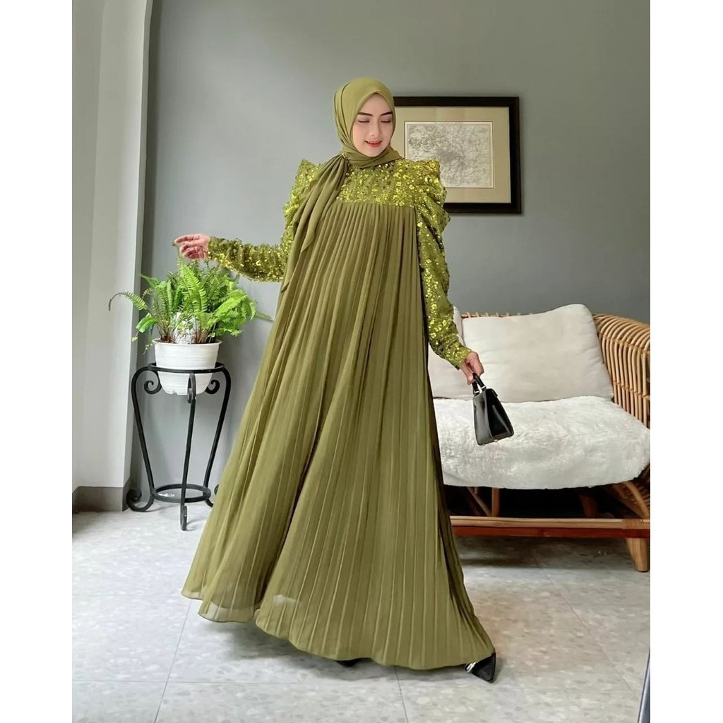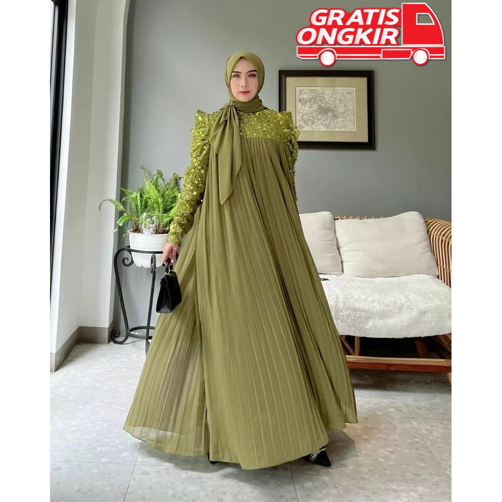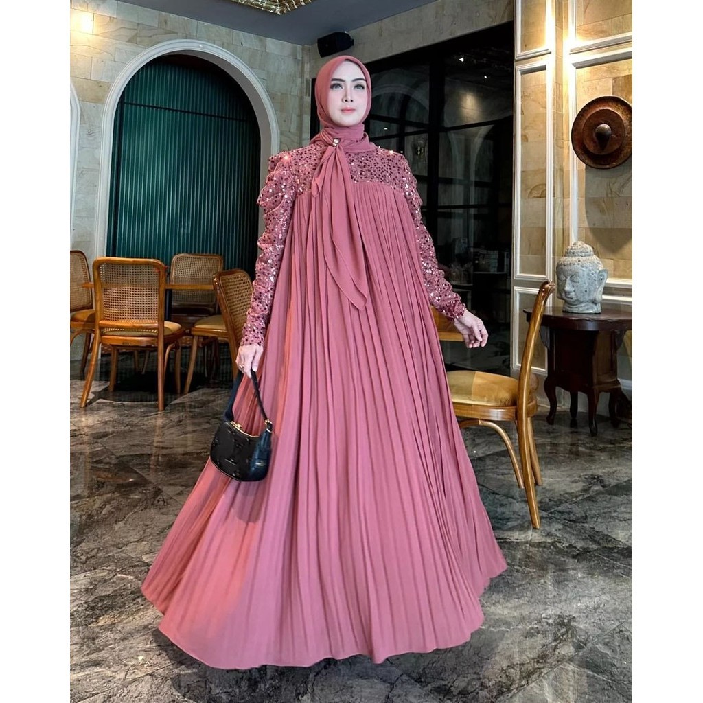 Lady Maxy Gamis Muslim Wanita Kondangan Matt Ceruty Babydoll Full Puring Premium All Size Fit To XL Besar Busui Friendly