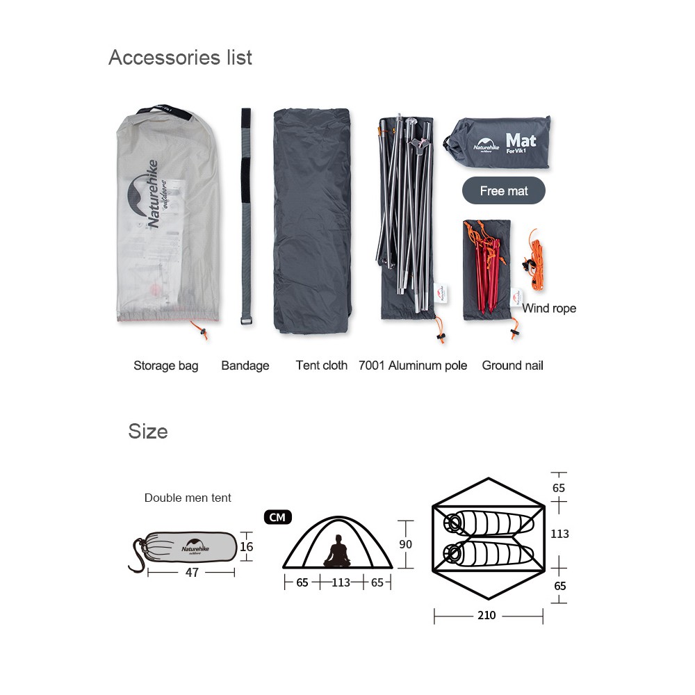 NATUREHIKE NH19ZP003-1 VIK TENDA ULTRALIGHT 2 ORANG 15D