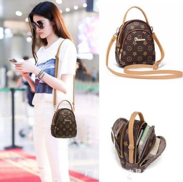 Tas Selempang Wanita Stylish Kekinian Serbaguna Slingbag Gendong Tenteng Motif Bunga Bahan Sintetis Kualitas Premium