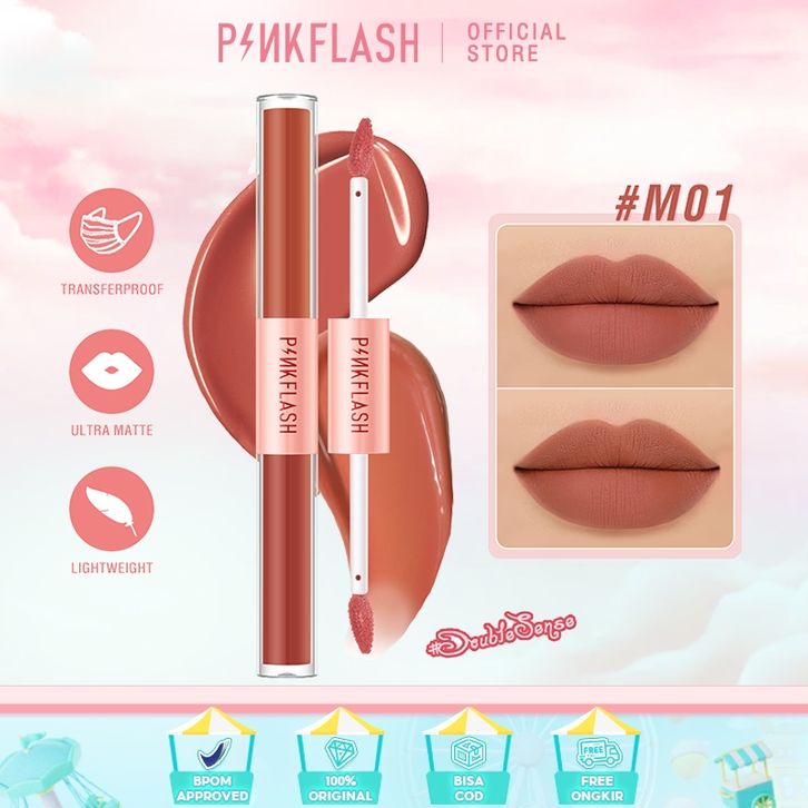 PINKFLASH DoubleSense 2 IN 1 Dual-ended Liquid Lipstick Ombrelips Matte Lipstik Lightweight High Pigment Lasting Lipstik