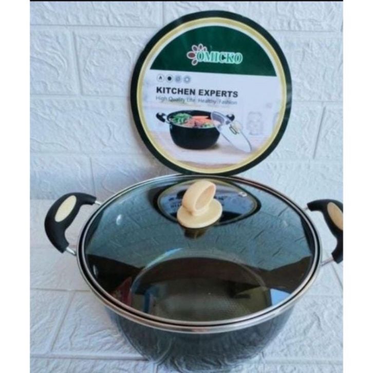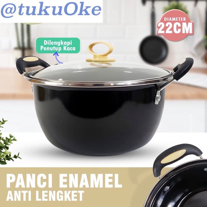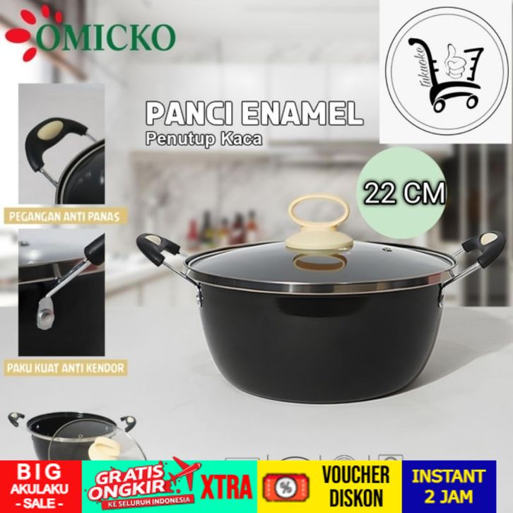 PROMO TANPA DP PANCI KUAH TUTUP KACASAYUR OMICKO 22CM TUTUP KACA WAJAN ANTI LENGKET Kuah Enamel Serbaguna Kualitas Bagus
