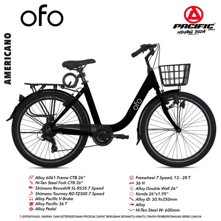 [Star]SEPEDA MINI PEREMPUAN REMAJA DEWASA 26 INCH PACIFIC OFO CITY BIKE ALLOY SHIMANO