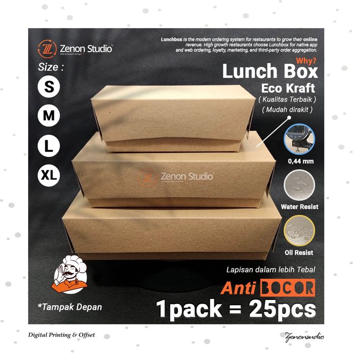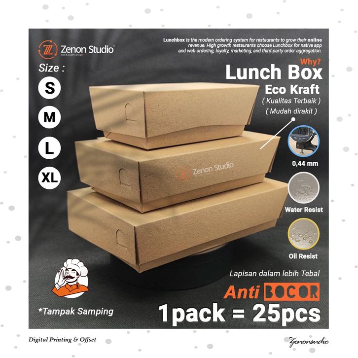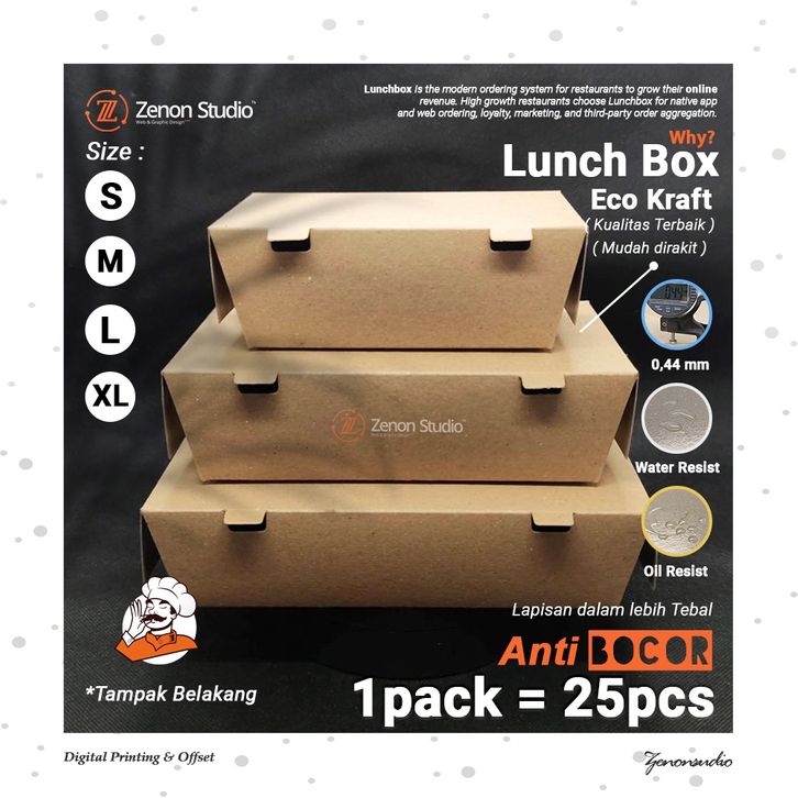 PROMO LUNCH BOX PAPER KOTAK BUNGKUS NASI FOOD GRADE KERTAS BAHAN KRAFT ECO ISI 50 PCS