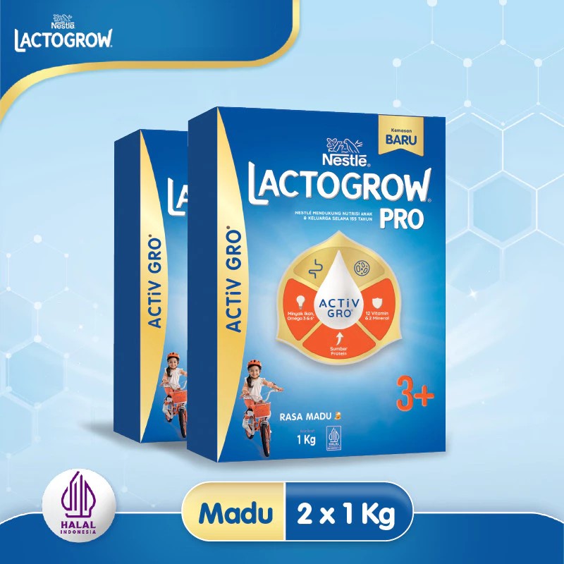 Nestle LACTOGROW PRO 3+ dengan ACTiVGRO Susu Madu/Vanilla Box - 1000g x 2 [3 tahun keatas]