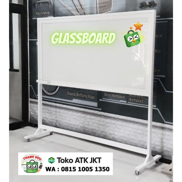 Glassboard Standing Non Magnetic Papan Tulis Kaca Whiteboard Custom - 45x60