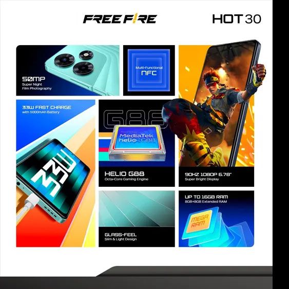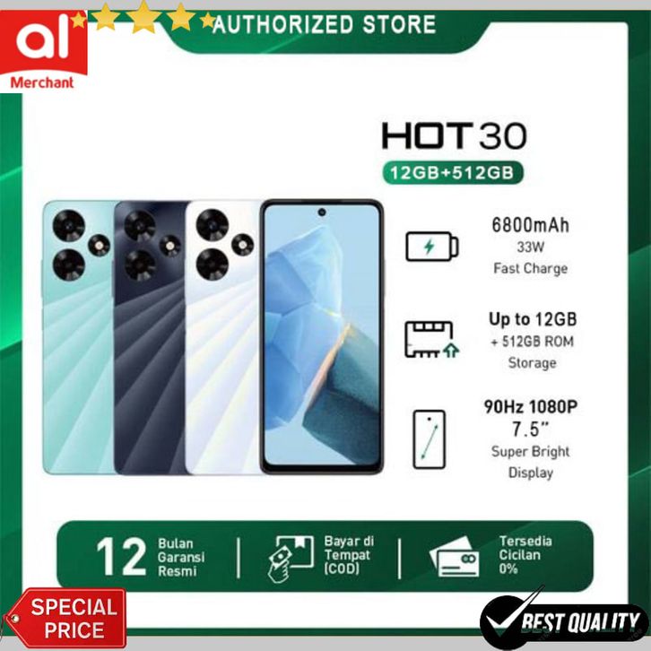 handphone Hot 30 12/512GB – Up to 12GB Extended RAM – Helio G88 7.5 FHD 90Hz – 50MP AI Camera – NFC garansi resmi