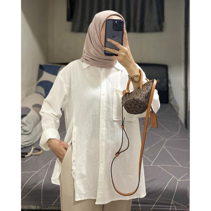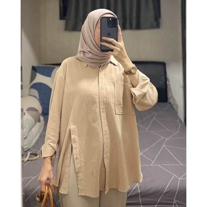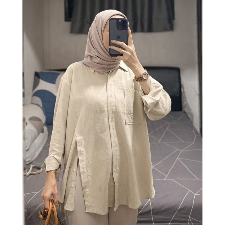 Orimoza Kemeja Polos Crinkle Wanita Kancing Samping Zaliah