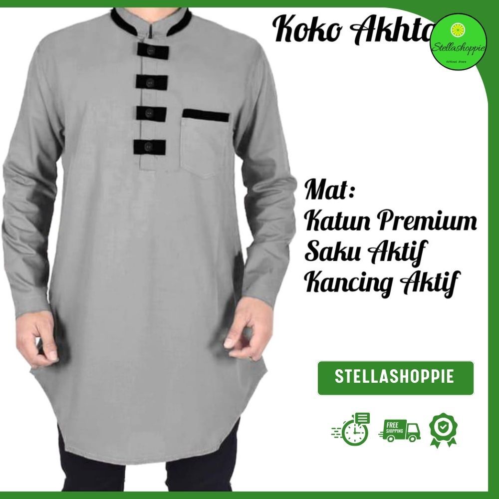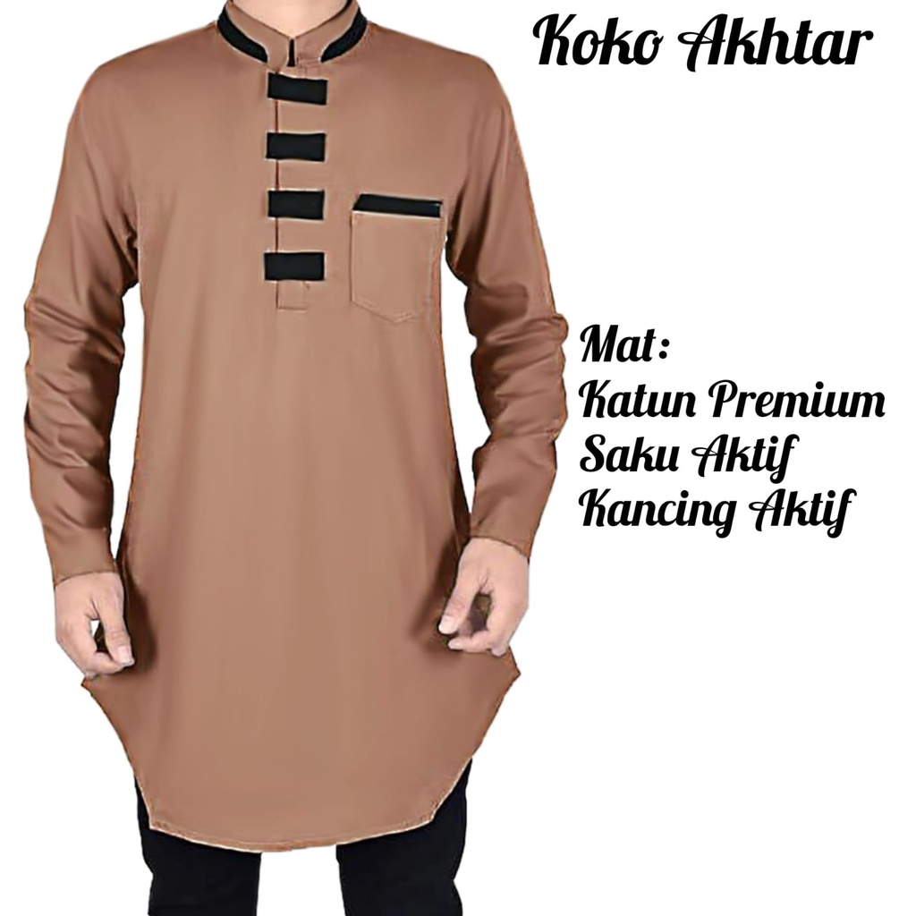 BAJU KOKO AKHTAR BAJU MUSLIM LAKI-LAKI PRIA DEWASA LENGAN PANJANG BAHAN KATUN ADEM MOTIF KOMBINASI MODEL PAKISTAN