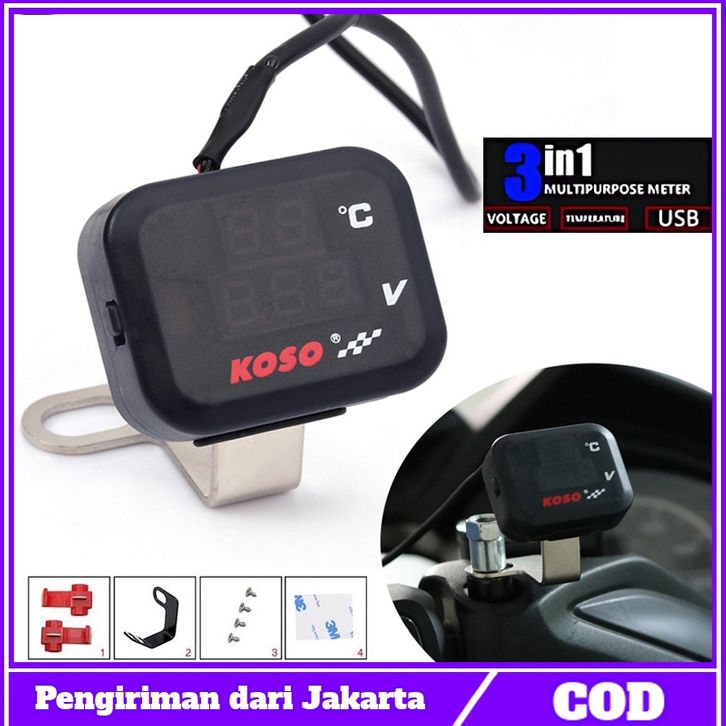 Voltmeter Koso 3 in 1 USB Charger Universal Semua Motor Anti Air Original Termometer Digital Jam Suhu Tegangan Aki Vari