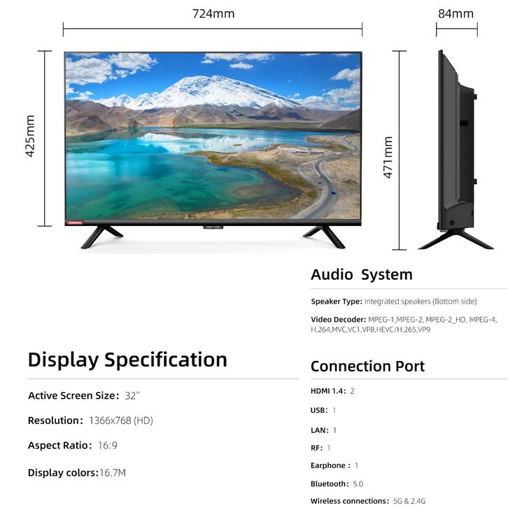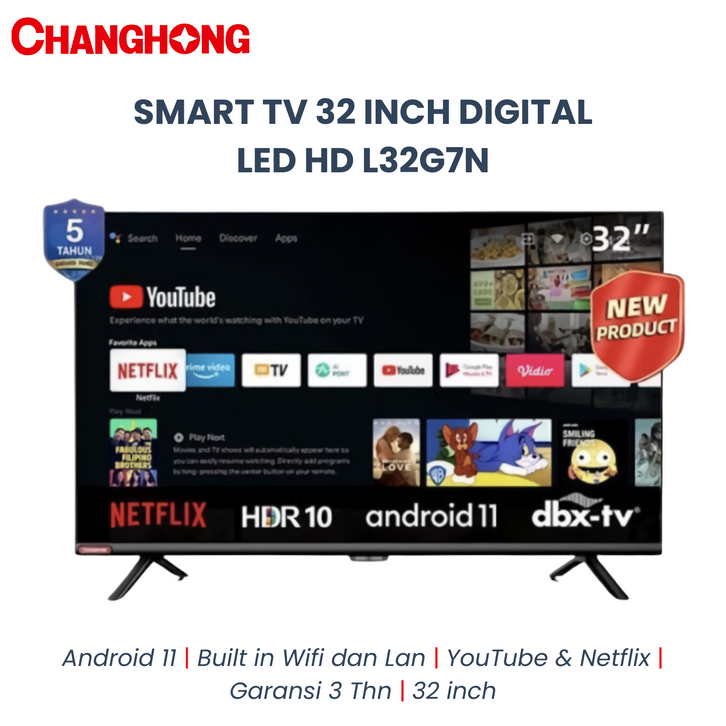Changhong 32 Inch Newest Android 11 Frameless Smart TV Digital LED TV HD (L32G7N) Garansi Resmi 3 Thn (L32G7N)