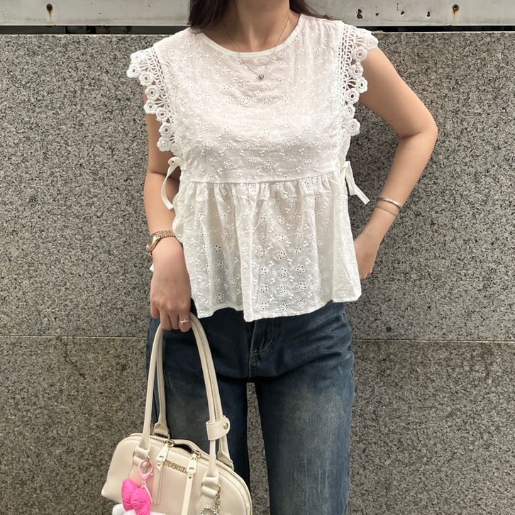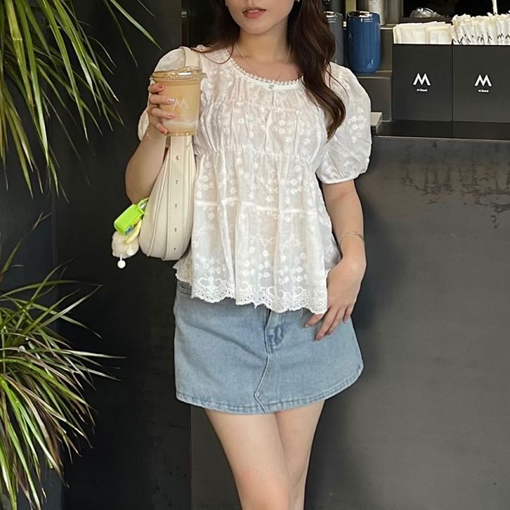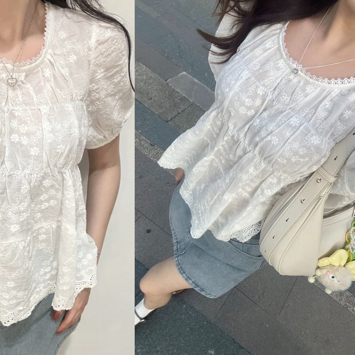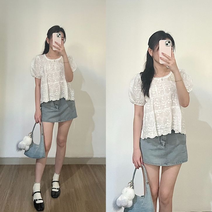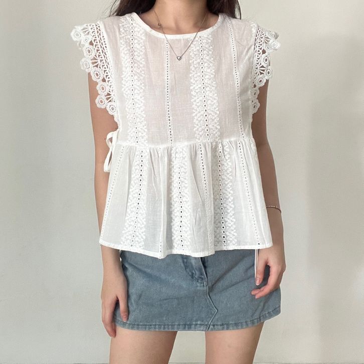 Atasan Wanita Millie Lace Top Style Kekinian 2025 Baby Doll Embroidery Renda Lace Bahan Premium Kualitas Terbaik