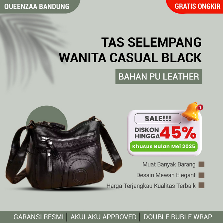 Taas Selempang Stylsih Wanita Sling Bag Perempuan Remaja Ibu Ibu Casual Pesta Hangout Bahan Kulit Sintetia Warna Hitam