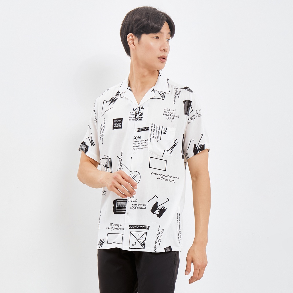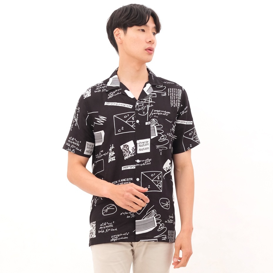 KEMEJA HAWAI PRIA KEKINIAN PRINTING - MATH BLACK CASUAL SHIRT E-2010