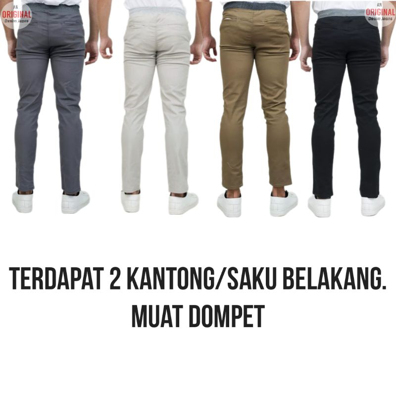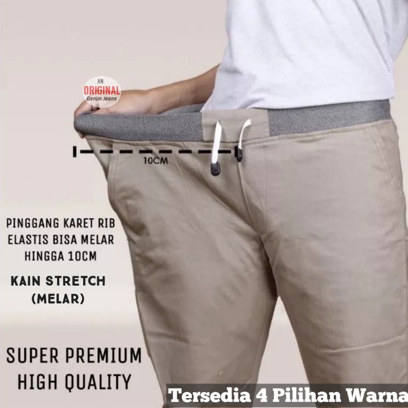 CELANA CHINOS PANJANG PRIA CELANA CHINO JUMBO STRETCH MELAR PINGGANG KARET PREMIUM SIZE 27-38