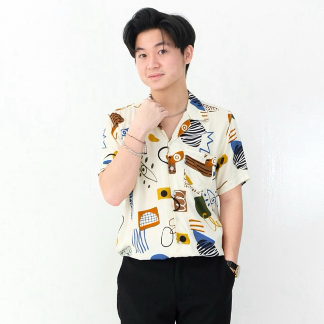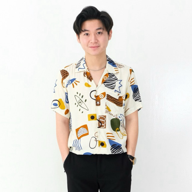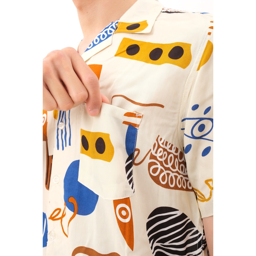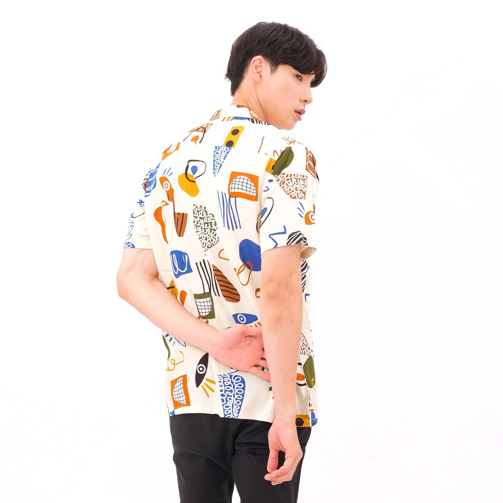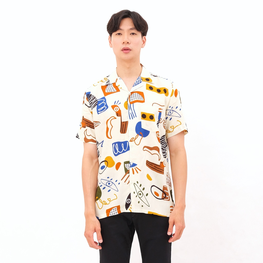 KEMEJA PRIA ABSTRAK VINTAGE CASUAL LENGAN PENDEK - ANEMA HAWAIIAN SHIRT E-2031