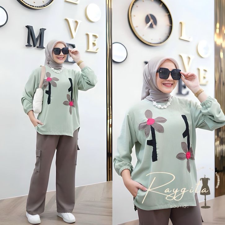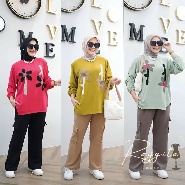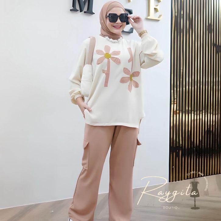 SET CARGO SUN FLOWER SETELAN CELANA CARGO WANITA TERBARU CRINGKLE AIRFLOW...
