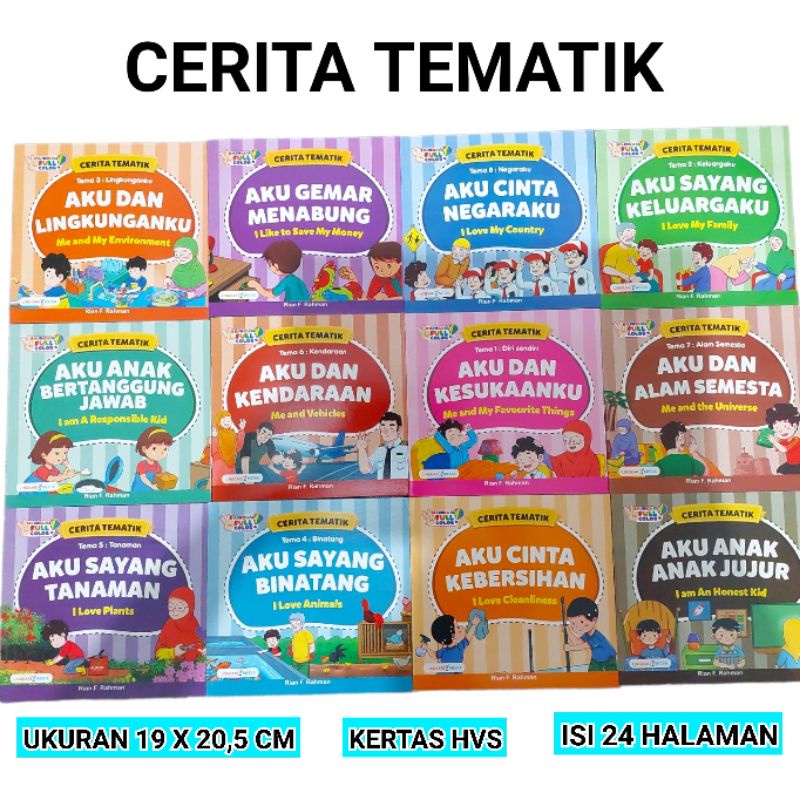 BUKU CERITA ANAK SERI TEMATIK BILINGUAL FULL COLOUR KERTAS HVS (PAKET 12 BUKU)