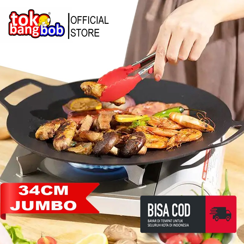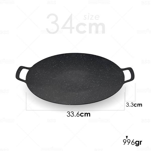 WAJAN PANGGANGAN GRILL PAN KOREA DATAR ANTI LENGKET UKURAN 34CM KOREA MARBLE NON STICK MULTI GUNA
