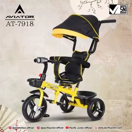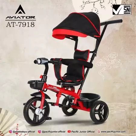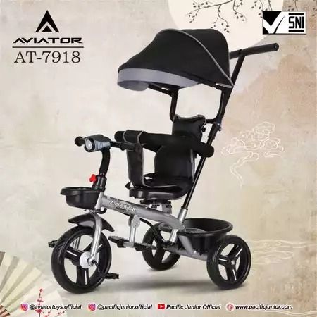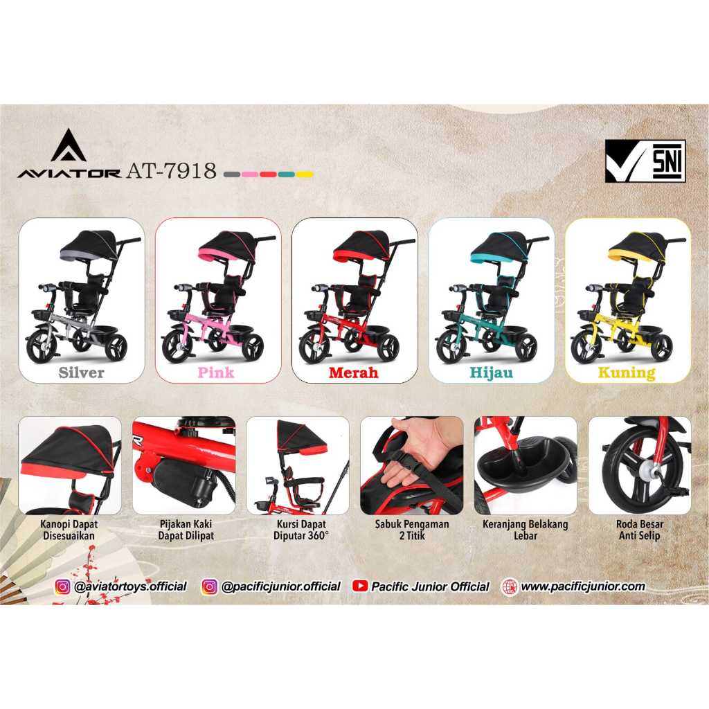 SEPEDA ANAK RODA TIGA AVIATOR 7918 STROLLER FITUR MUSIK KURSI 2 ARAH TONGKAT SETIR KANOPY