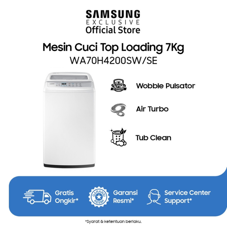 MESIN CUCI SAMSUNG SATU 1 TABUNG 7KG 7 KG WA70H4200SW/SE TOP LOADING BUKAAN ATAS MURAH
