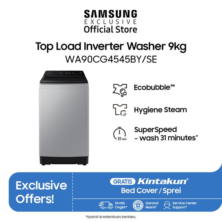 MESIN CUCI SAMSUNG SATU 1 TABUNG 9KG 9 KG WA90CG4545BYSE INVERTER TOP LOADING BUKAAN ATAS MURAH