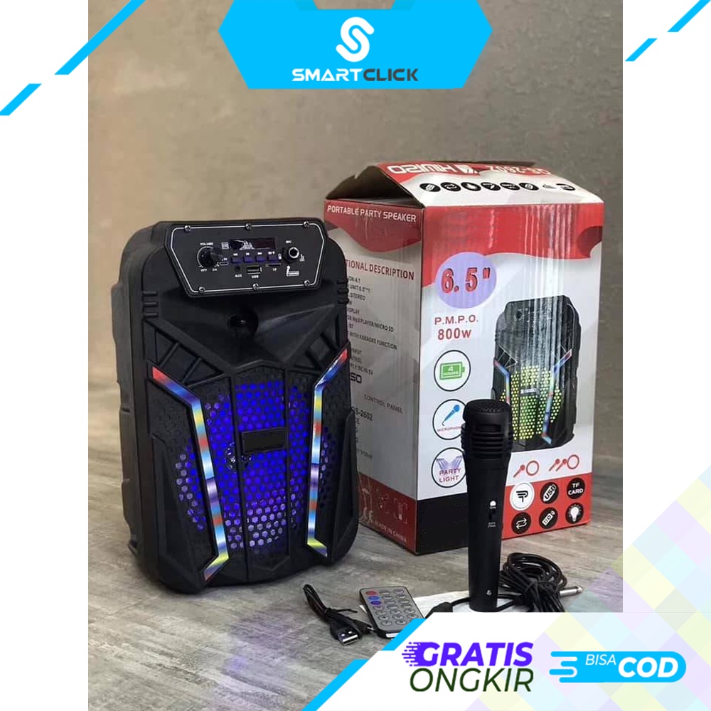 SPEAKER BLUETOOTH KARAOKE PORTABLE EXTRA BASS GRATIS MICROPHONE FM RADIO MEMORY CARD QS 2602