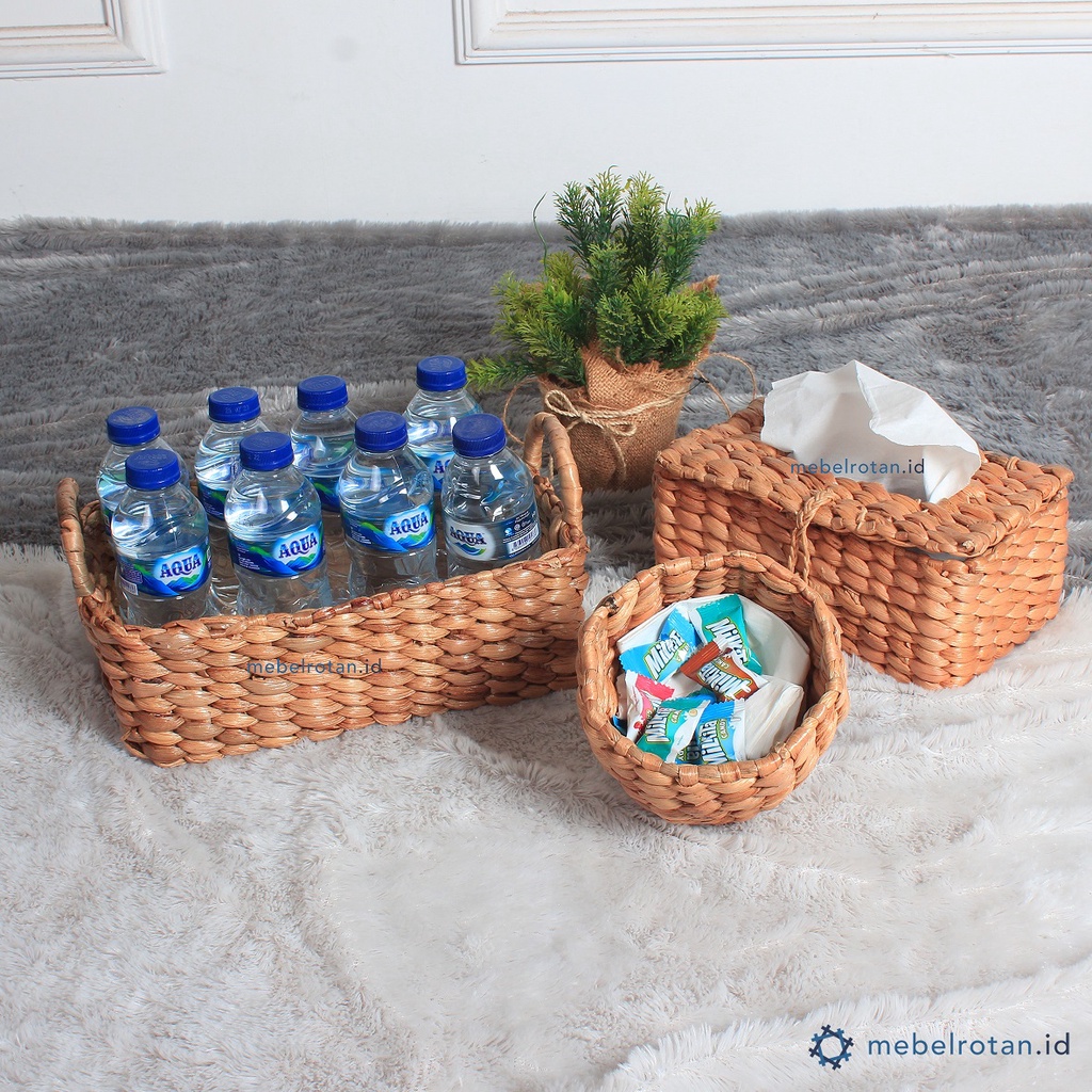 [PAKET 1] KERANJANG ENCENG GONDOK TEMPAT TISSUE PANJANG + AQUA + POT