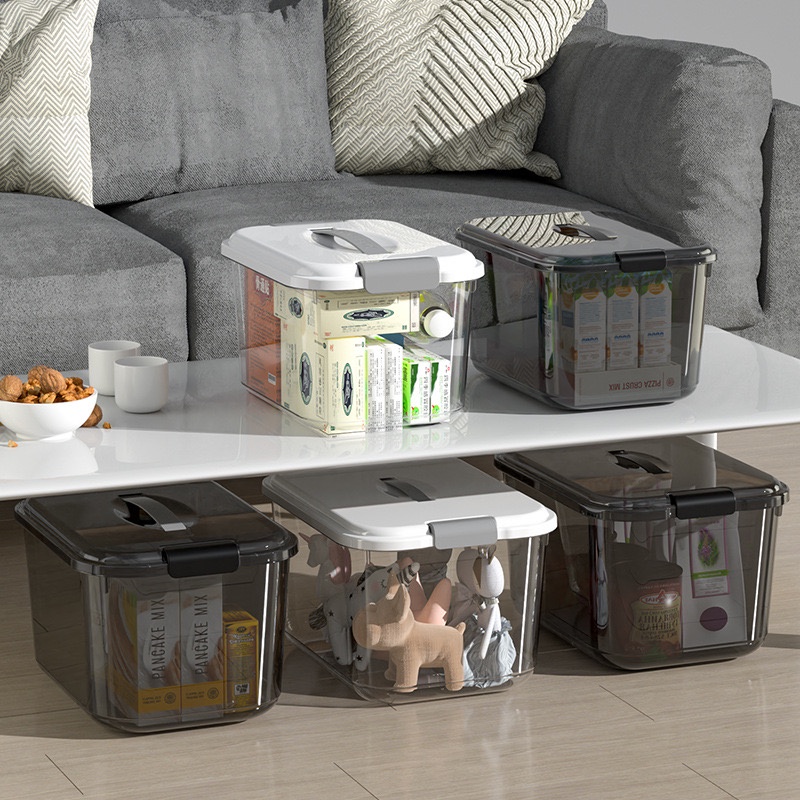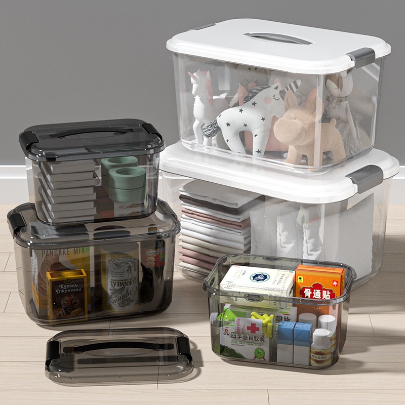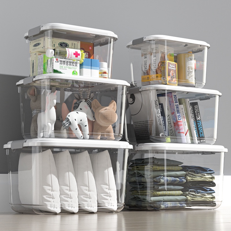 KERANJANG PENYIMPANAN TRANSPARAN SEGEL BAJU MAINAN DENGAN TUTUP BOX STORAGE MULTIFUNGSI KOTAK PLASTIK