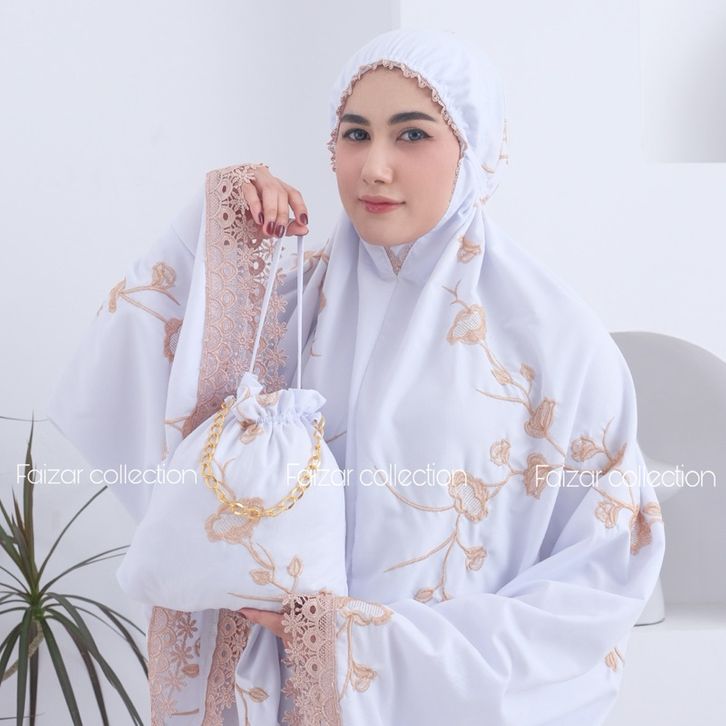 Mukena Dewasa Alisha Bordir Bunga Merayap Katun Premium