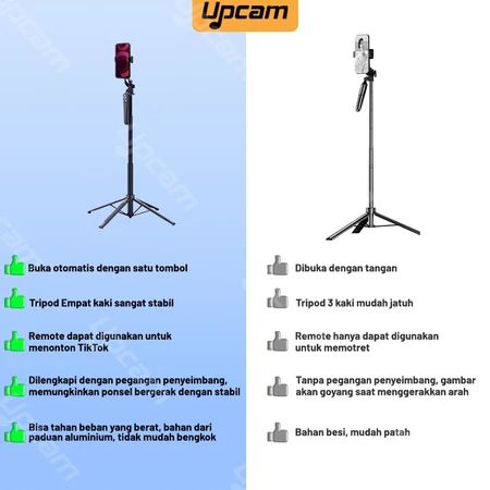 UPCAM 180CM TONGSIS TRIPOD QUADPOD 4IN1 SELFIE STICK BLUETOOTH REMOTE STABILIZER TONGSIS TRIPOD HP KONTEN KREATOR