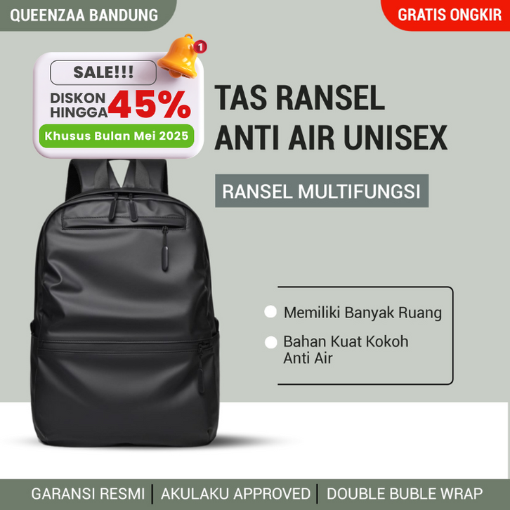 Tas Ransel Pria Wanita Anti Air Tas Gendong Sekolah SMP SMA Kuliah Kerja Tas Laptop Waterproof