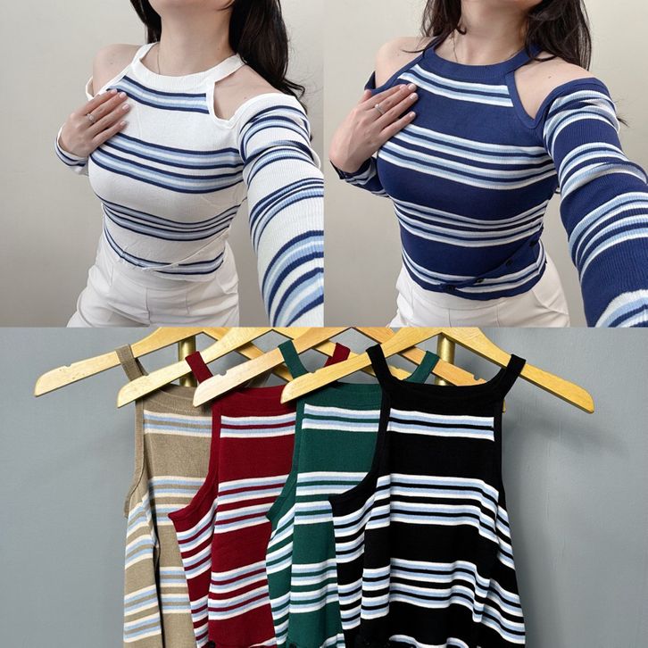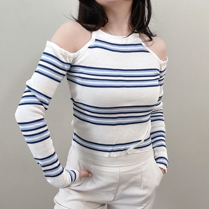 Crop Top F18 Kira Wanita Korea Korean Style Serut Anak Lengan Panjang Jumbo Rajut