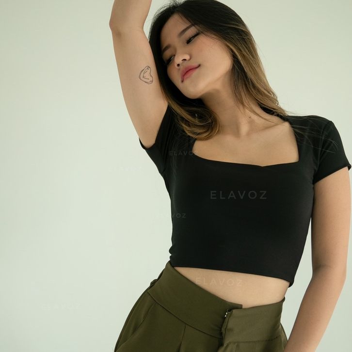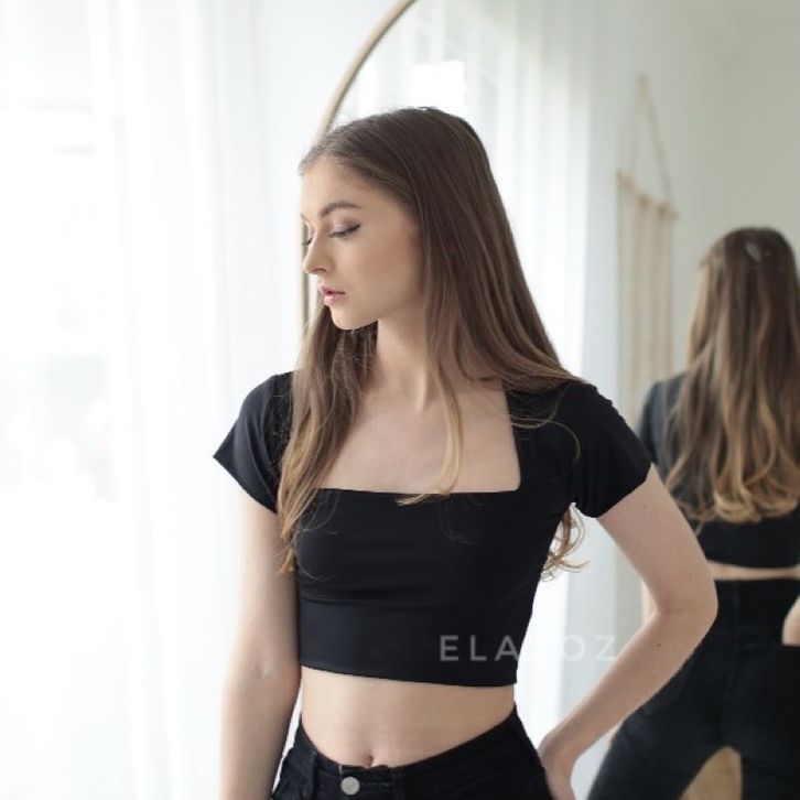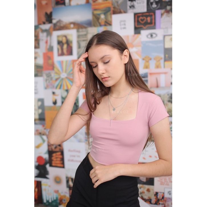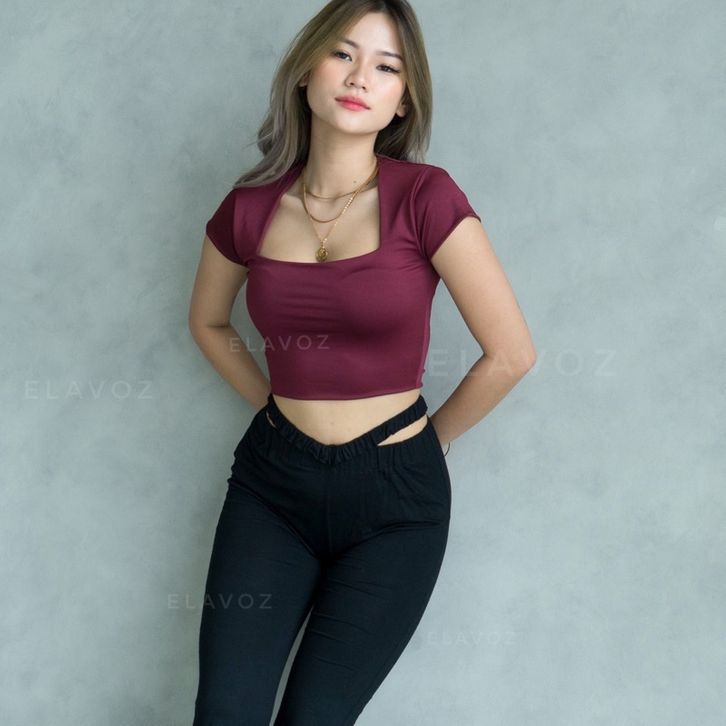 Crop Top Kira Wanita Korea Korean Style Serut Anak Lengan Panjang Jumbo Rajut