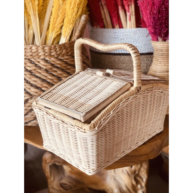 KERANJANG PIKNIK ROTAN + BUBLEWARP