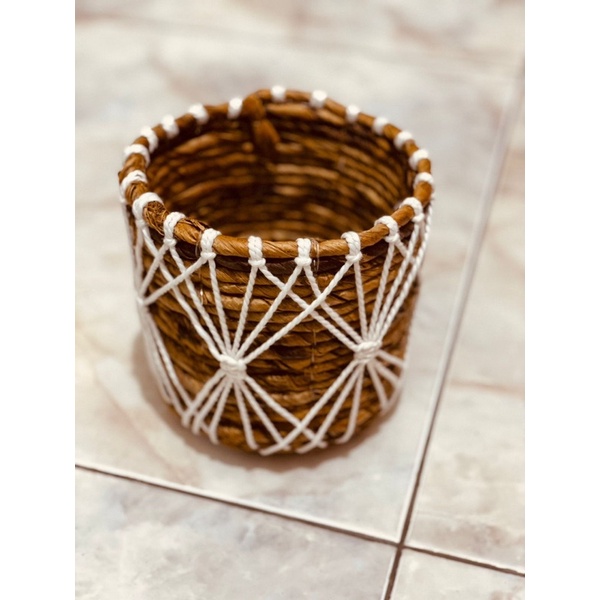 POT VOT MINI BANANA RAJUT PUTIH ANYAMAN TEMPAT PENYIMPANAN SERBAGUNA