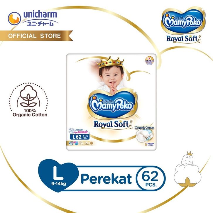 Termurah MamyPoko Royal Soft Organic Cotton - L 62 - Popok Tape