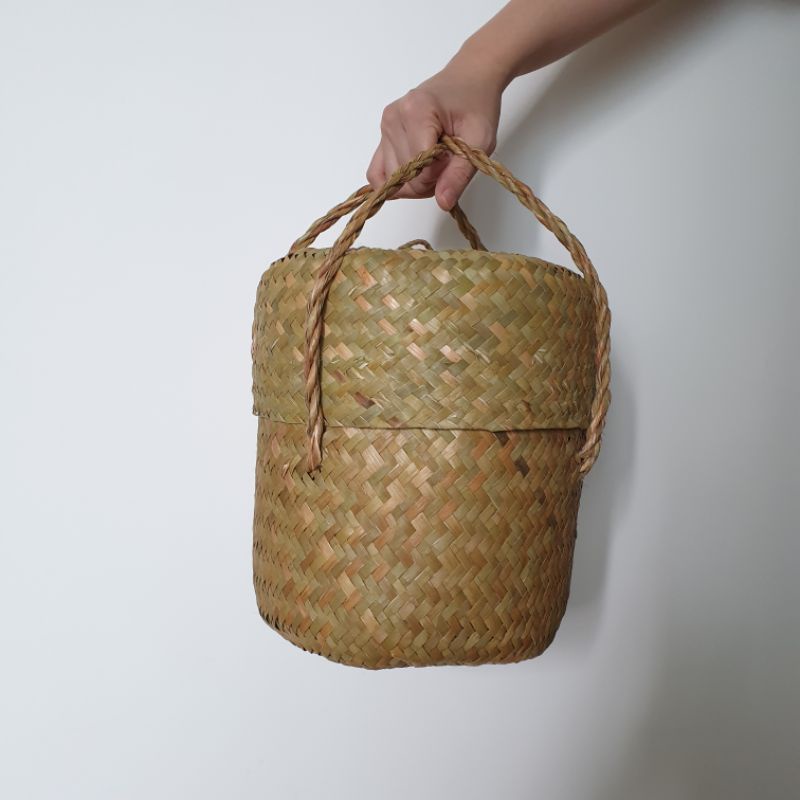 TAS PURUN BULAT TUTUP TAS HAMPERS PURUN TAS PARSEL PURUN TAS SOUVENIR ANYAMAN TAS HANDMADE