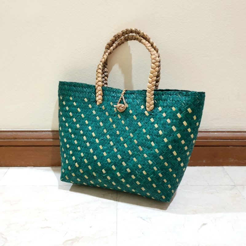 TAS PURUN MIDI HIJAU TAS ANYAMAN PURUN TAS HAMPERS PARCEL SOUVENIR GOODIE BAG HIJAU LEBARAN