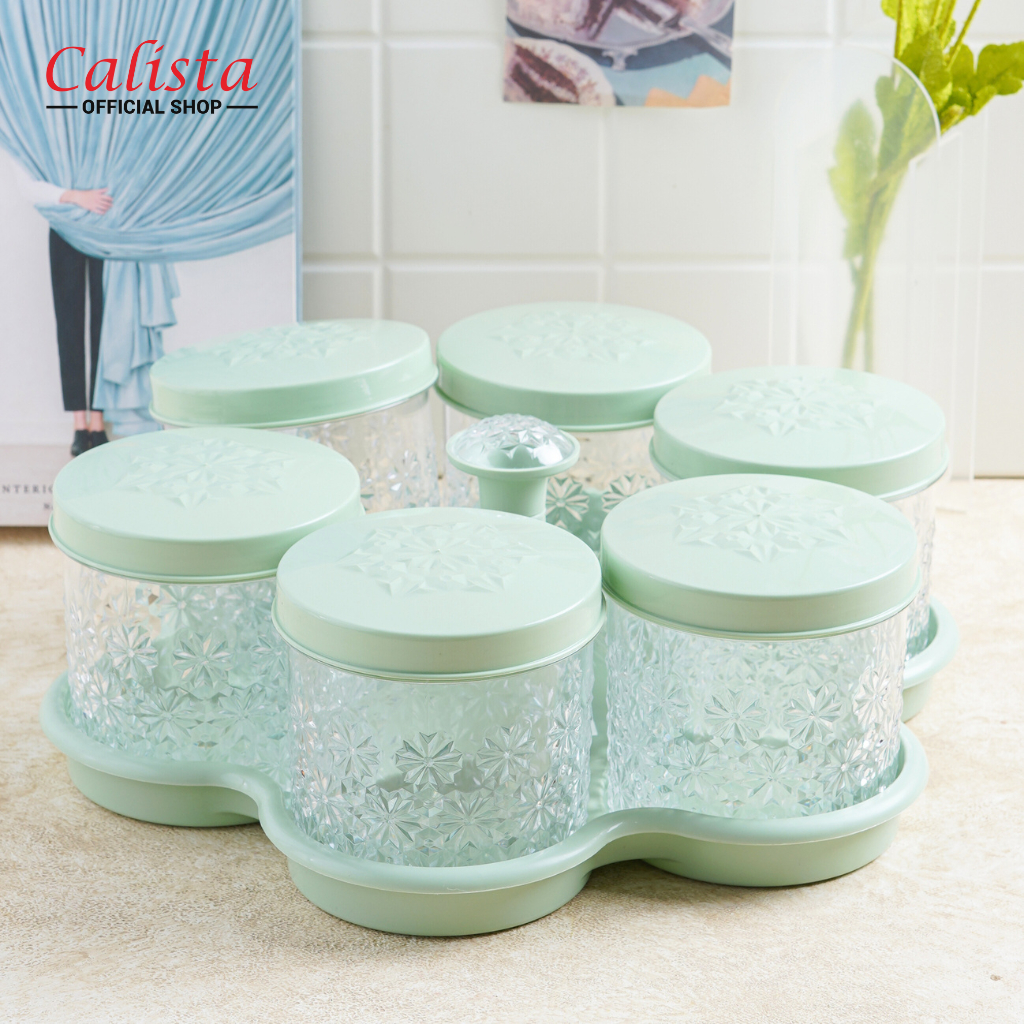 Calista Toples Kristal Enam Bunga Toples Set Kue Lebaran 7 in 1