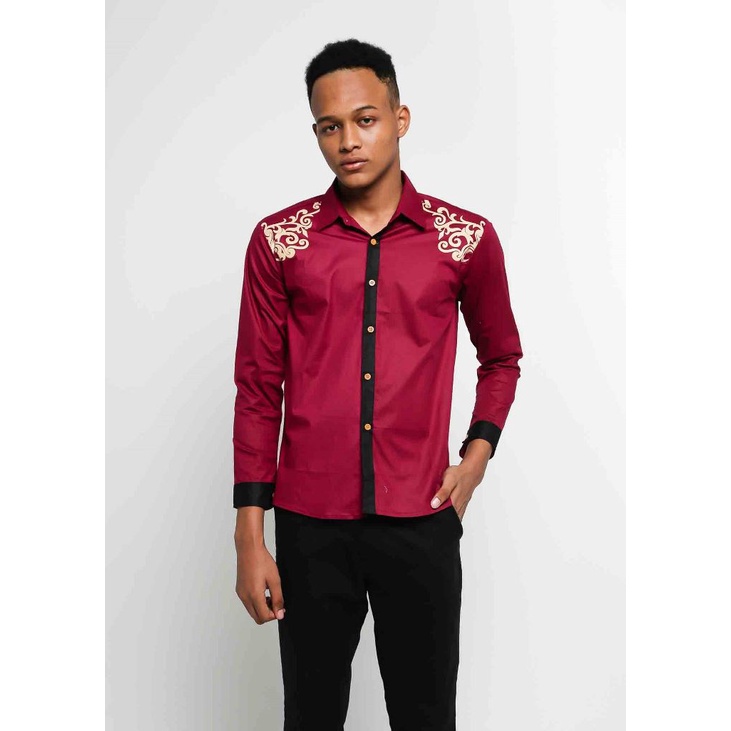 JONY MAROON KEMEJA POLOS PRIA LENGAN PANJANG KEMEJA KANTOR FORMAL COWOK HITAM PUTIH NAVY
