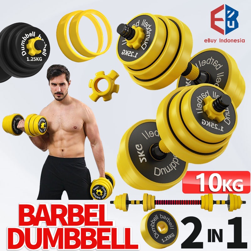 DUMBBELL 10 KG BARBELL SET PERALATAN FITNESS GYM DUMBBELL BARBELL 2 IN 1