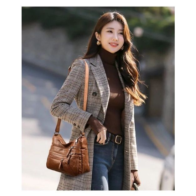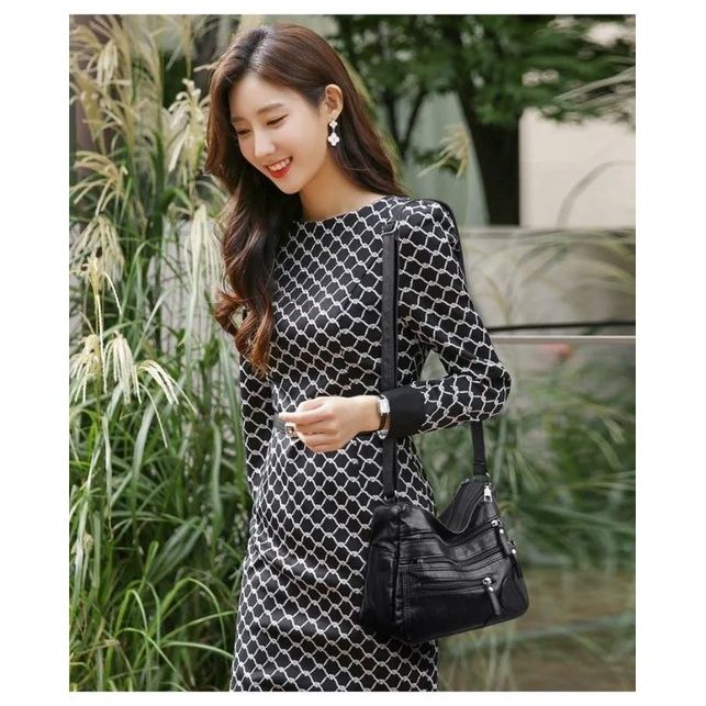 Tas Selempang Wanita Sling Bag Formal Stylish Kasual Kerja Traveling Banyak Ruang Tempat HP Dompet Bahan Kulit Sintetis