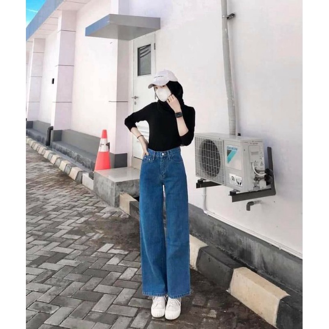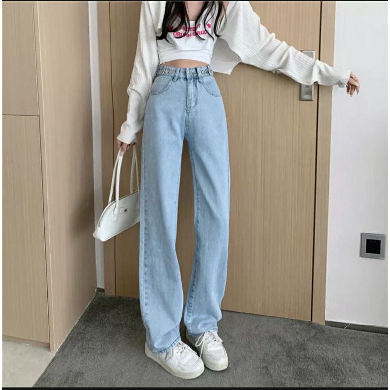 Celana Jeans Wanita Highwaist Loose Hangover Kekinian Trend Fashion Baju