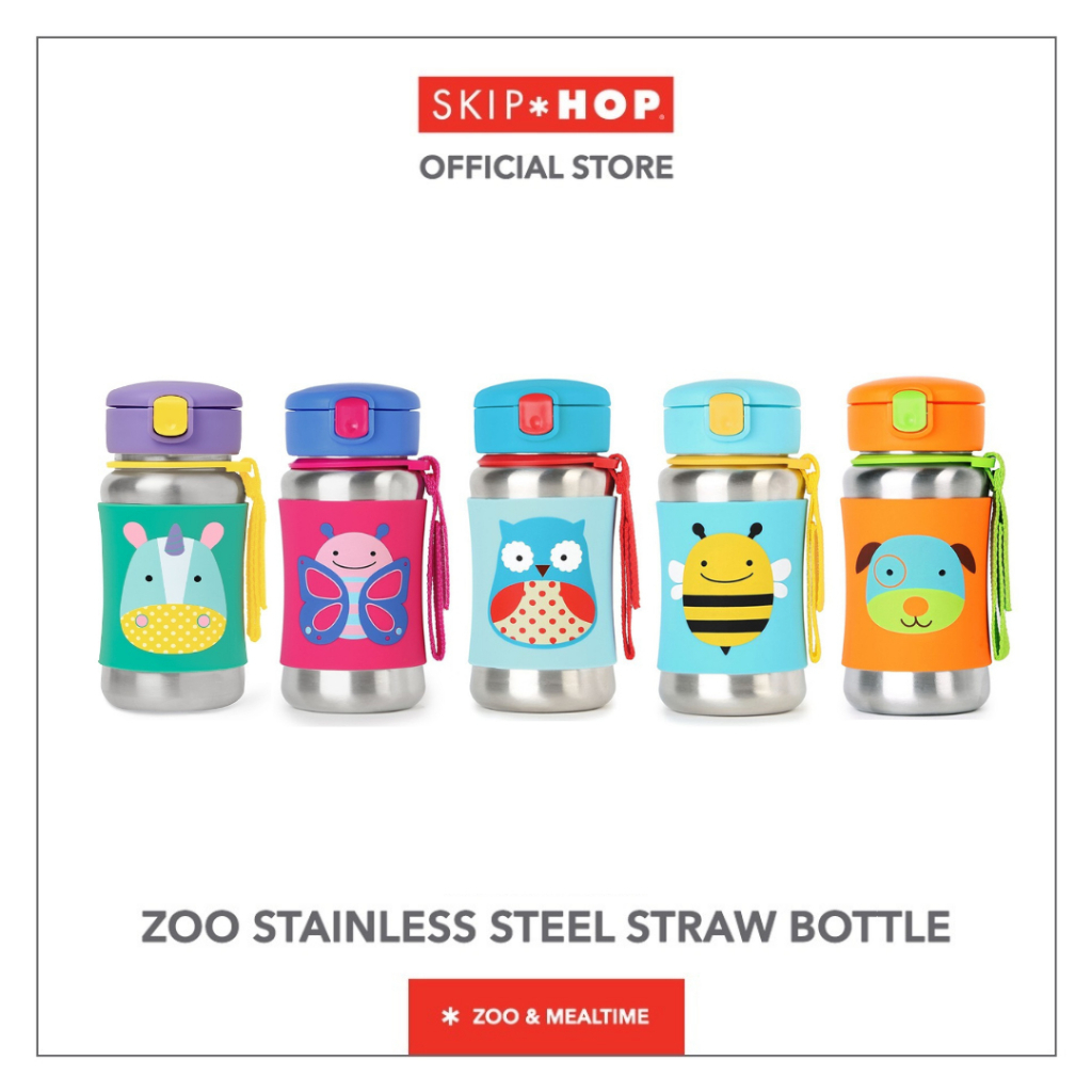 Skiphop Zoo Stainless Steel Straw Bottle - Botol Minum Stainless Steel Anak - 350 ml