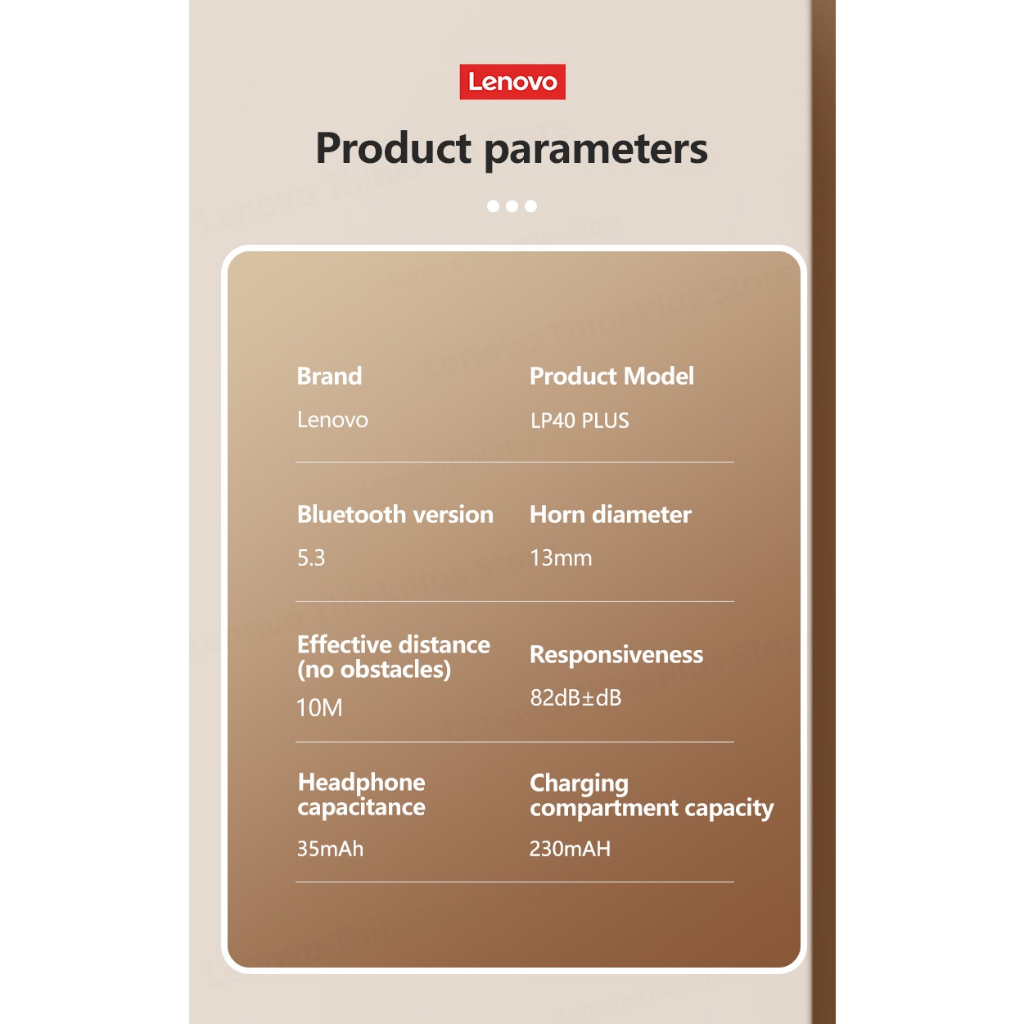 ORIGINAL LENOVO LP40 PLUS TRUE WIRELESS BLUETOOTH EARPHONE V5.3 HD VOICE CALL WITH MIC MINI
